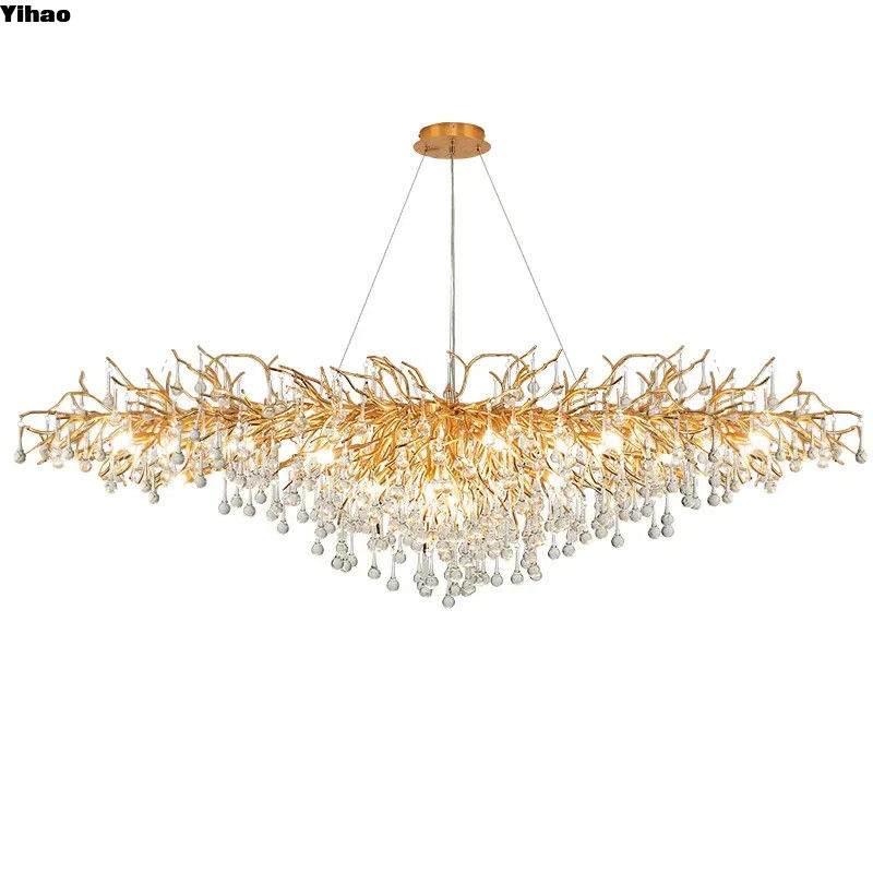 | Principales caractéristiques | Chandelier suspendu en verre, chandelier à plafond, chandelier en or |